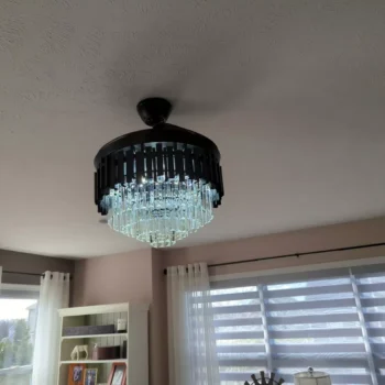 This luxury 42 Crystal Ceiling Fan is simply amazing! From aesthetics point of view, it’s absolutely gorgeous; those crystals give off such a nice sparkle when hit by sunlight or turned-on LEDs- makes you feel like you’re living in some kind of fairy tale. From a practical standpoint, it’s also top-notch; the invisible blades are quiet and effective at circulating air around my living room while the dimmable LED lights provide just the right amount of light for any occasion.